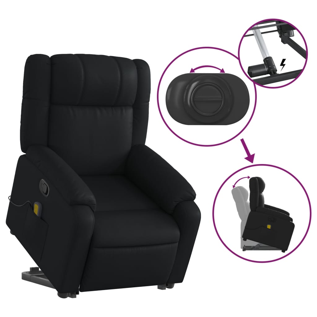 vidaXL Stand up Massage Recliner Chair Black Faux Leather
